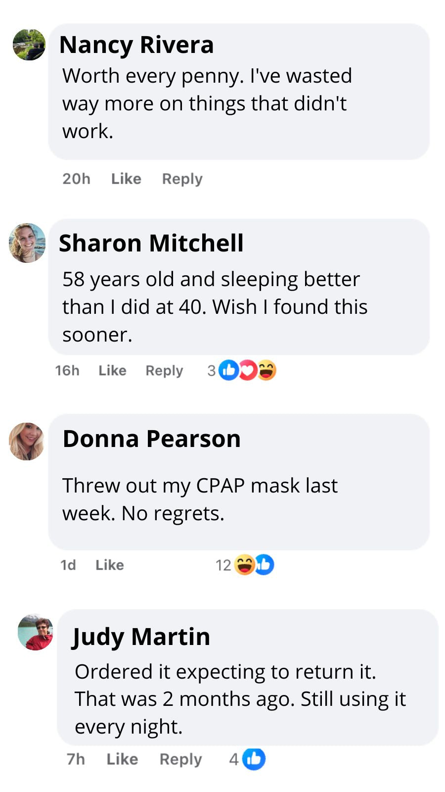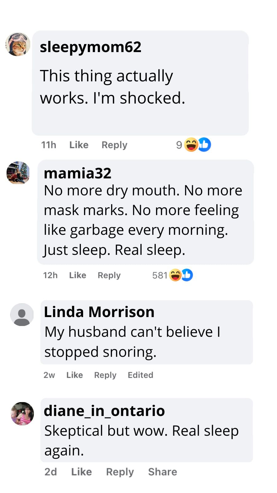 "After 4 Failed CPAPs, I'd Given Up""I accepted that tired, puffy face was just my life now. The bags under my eyes were permanent, or so I thought. My daughter convinced me to try this as a last resort. Two weeks later, I barely recognized myself in the mirror. I look 10 years younger because I'm finally sleeping."— Linda S.