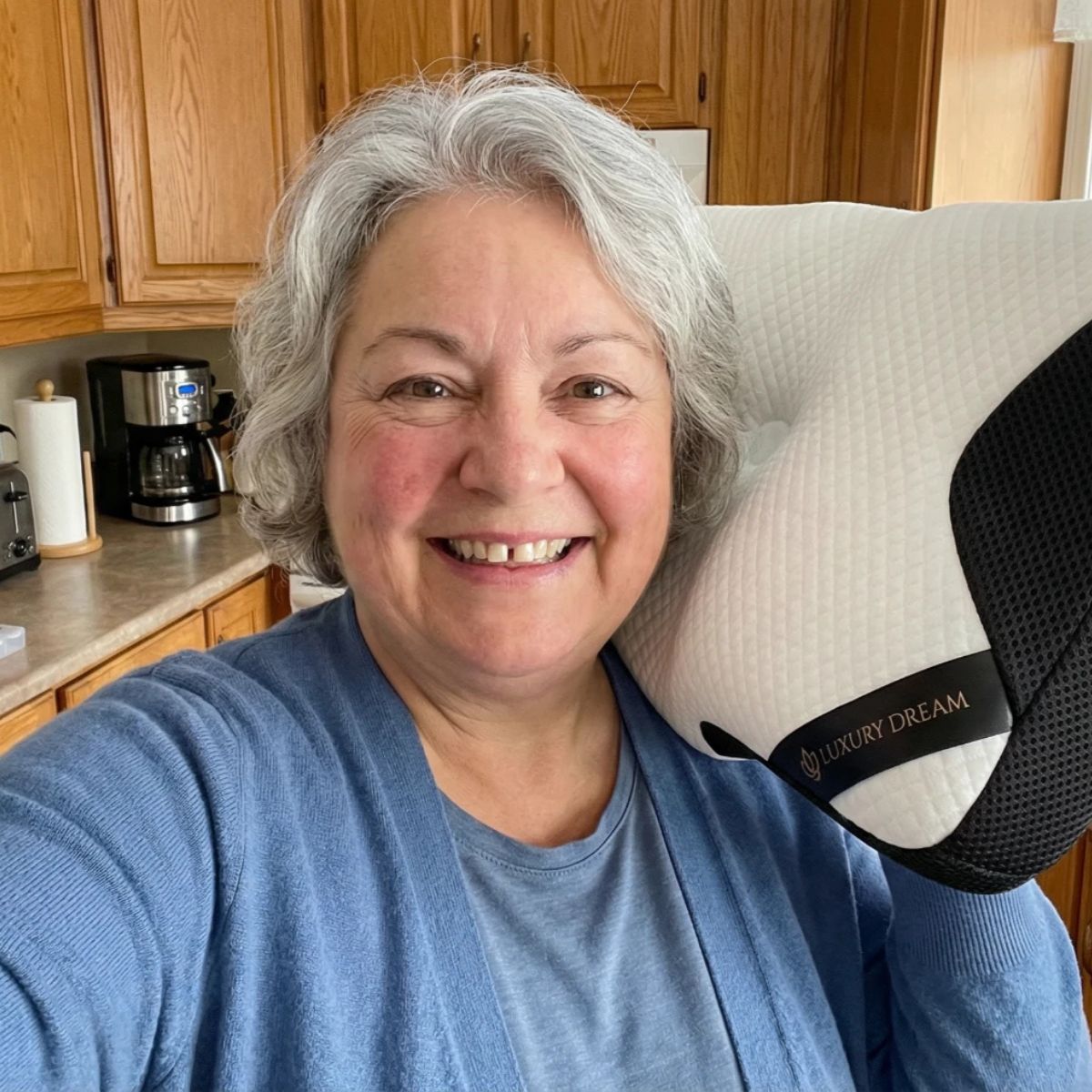 "I Didn't Think a Pillow Could Replace My CPAP""How could a pillow do what a medical machine couldn't? I almost didn't order. But I was desperate — sick of waking up with mask marks and still looking exhausted. The difference in my face says it all. No more dark circles. No more puffiness. I actually look rested because I finally AM rested."— Karen T.